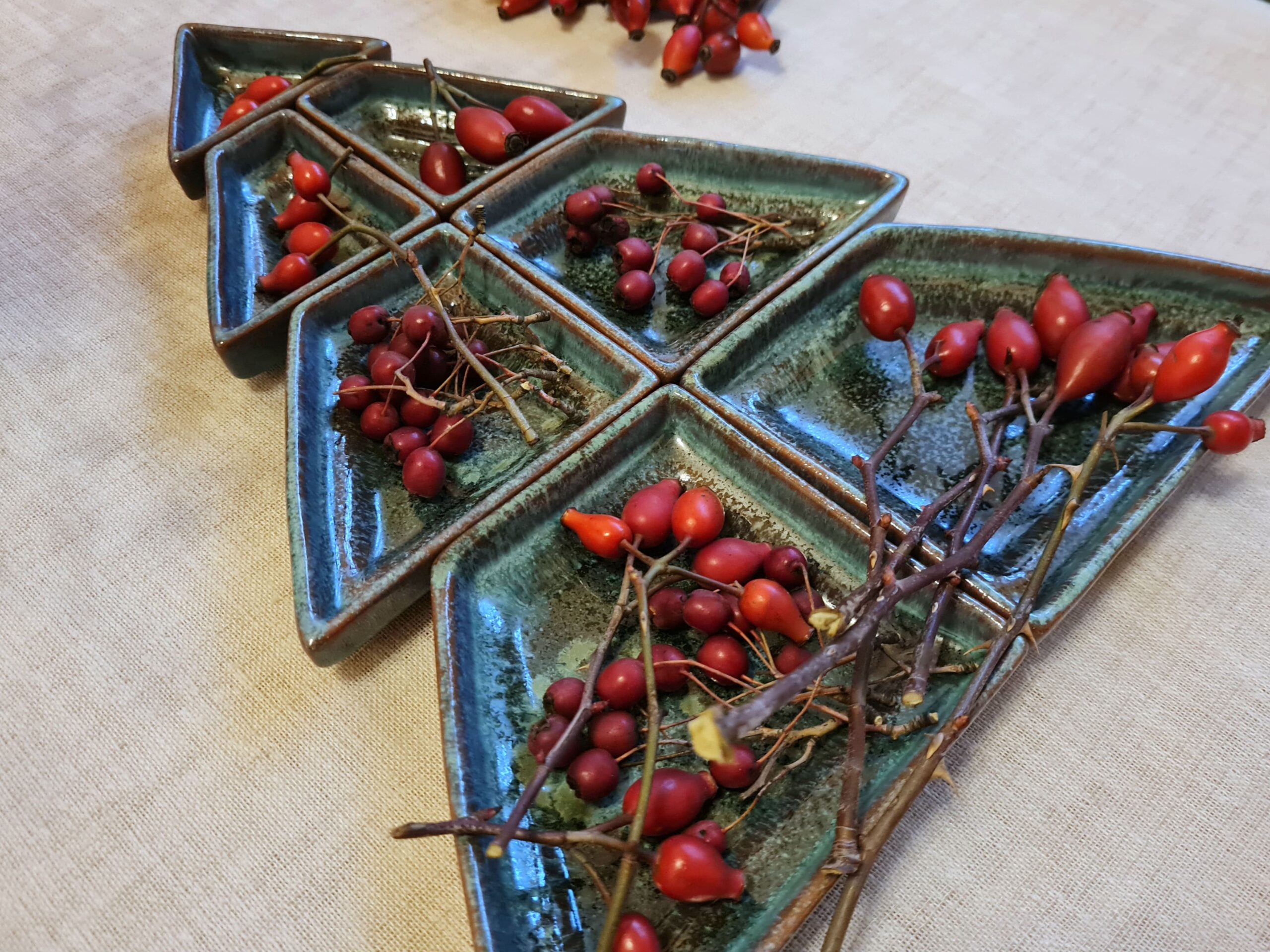 - Compus din 7 piese/recipiente care se asamblează și formează un brad;